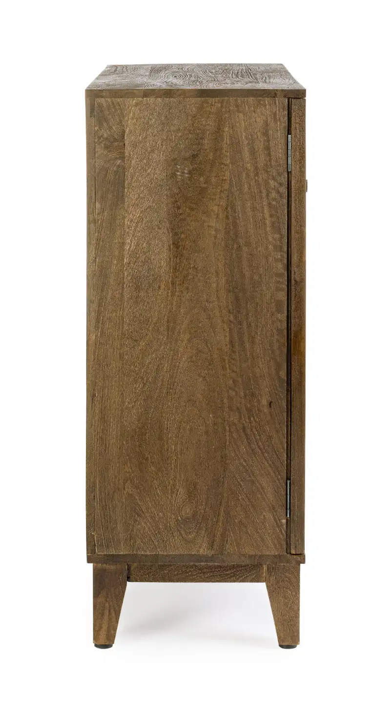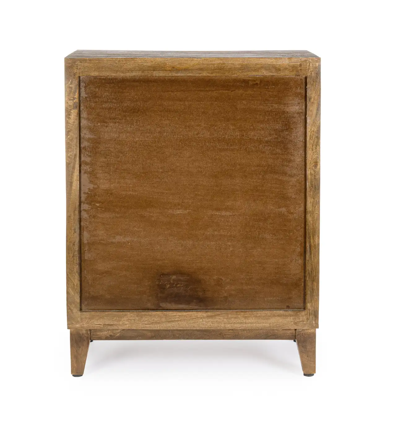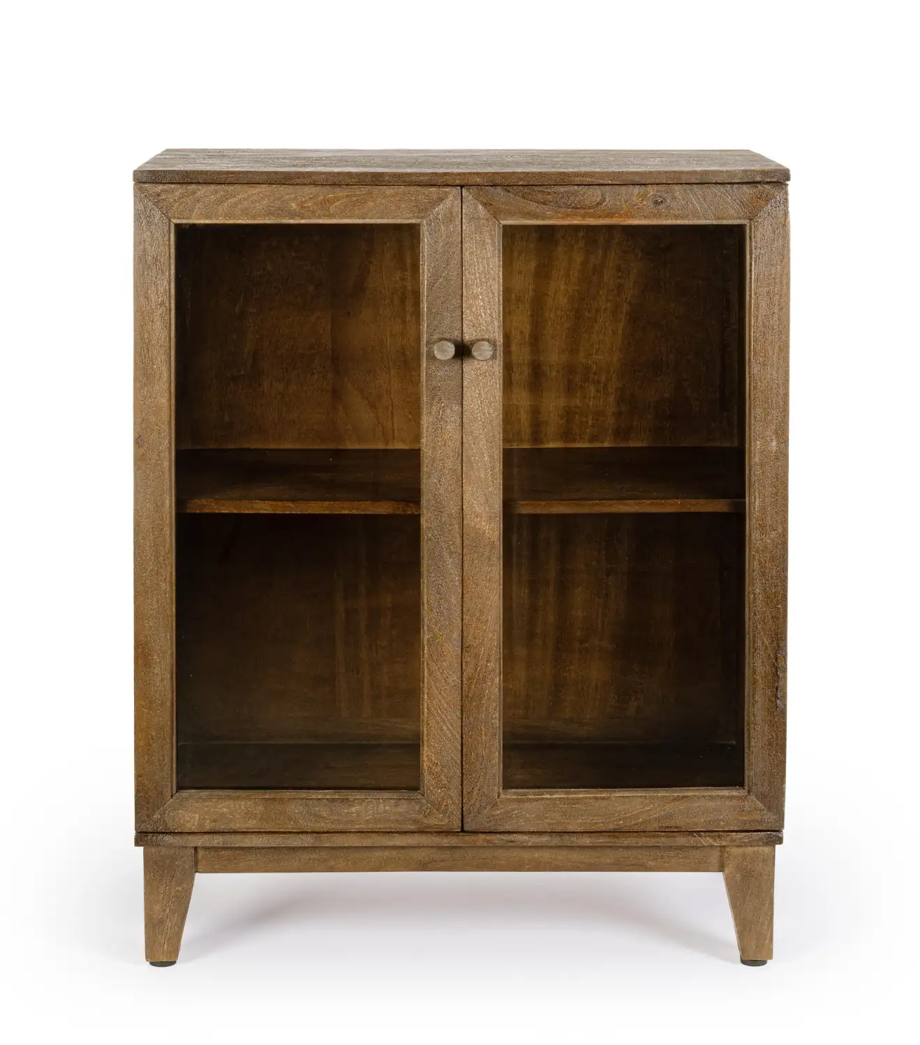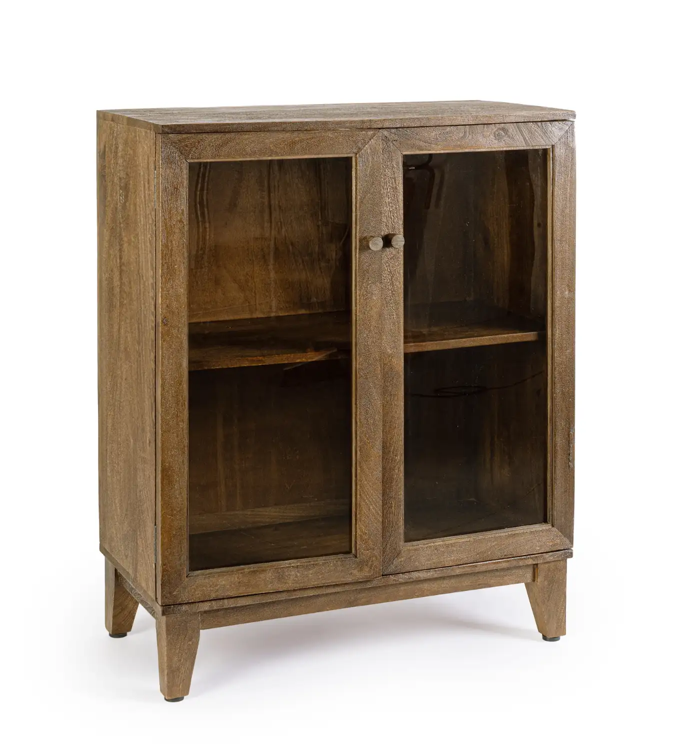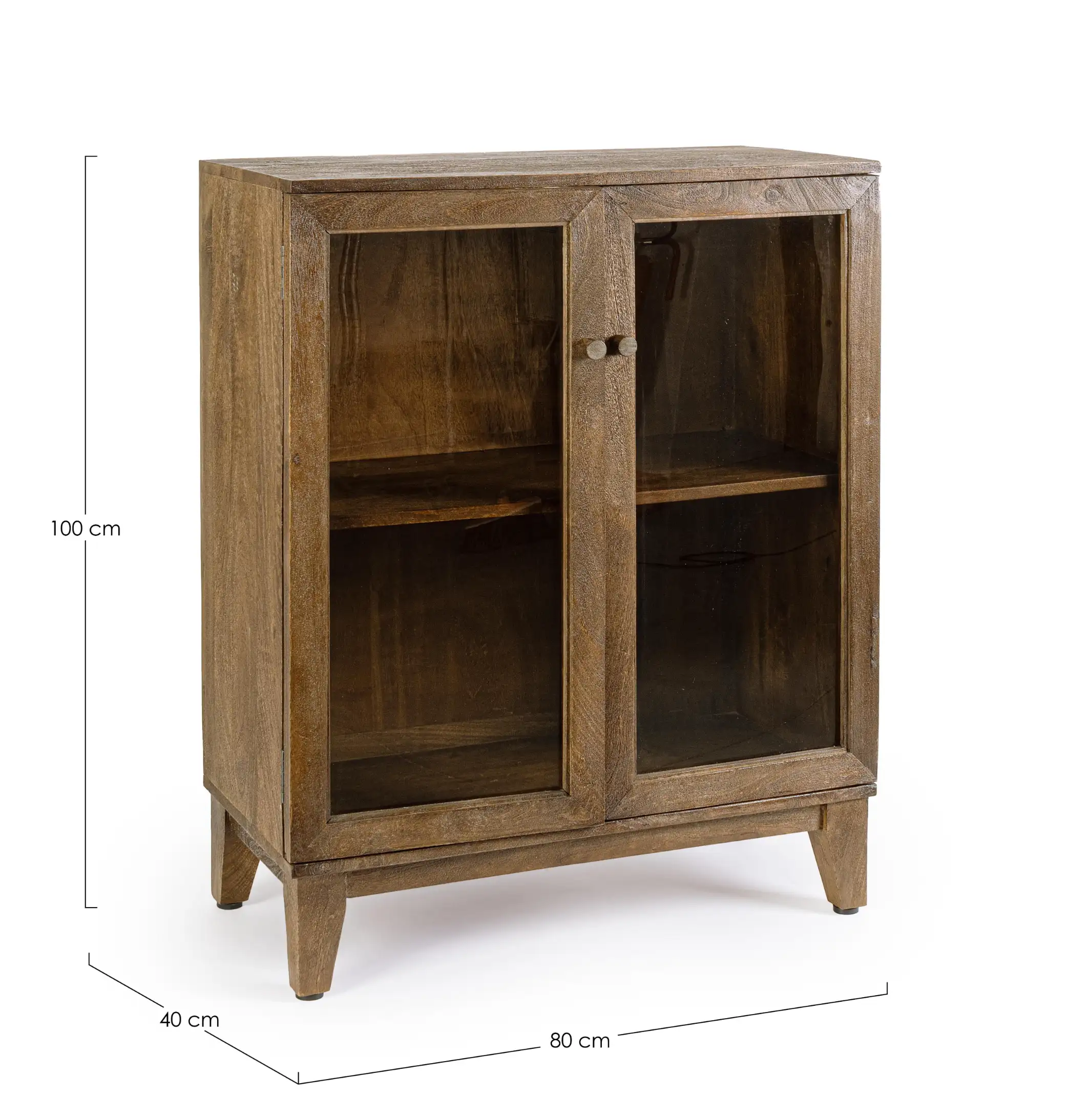Okvir od drva manga, nitrocelulozna završna obrada i staklo boje jantara.